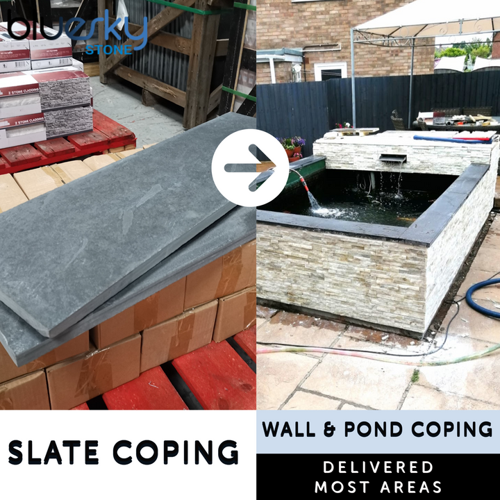 Regular price From £205.20 GBPSale price From £205.20 GBP Regular price £283.20 GBPUnit price perSold outBlack Slate Paving Patio Coping & Pond Slabs 800 x 250 x 20 mm | As low as £34.56/m2 | Delivered